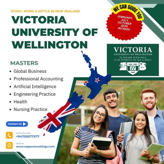 Advance your career with a master’s degree from Victoria University of Wellington, New Zealand. Experience world-class education, research opportunities, and global networking in a vibrant and inspiring environment. Ready to start your adventure? 🌟 Contact us at SAGE for personalized guidance and support on your study abroad journey. We are here to turn your…