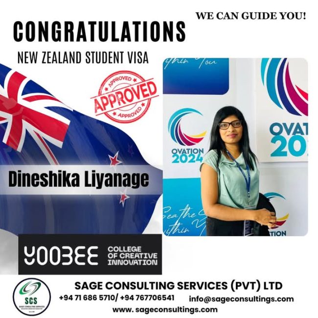 Congratulations to Dineshika Darshani Liyanage! 🇳🇿 Course: Master of Business Informatics (Business Analytics) – Level 9 Institution: Yoobee College of Creative Innovation, New Zealand Visa Granted On: 25th November 2025 Dineshika is a highly experienced Procurement Executive at Omega Line Ltd., with a strong academic background, including an MBA in Supply…