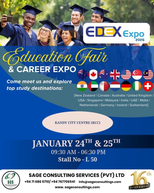 Meet Team Sage at the EDEX Expo 2026 – Kandy, happening at Kandy City Center (KCC) on the 24th & 25th of January, from 9.30 AM to 6.30 PM. Find us at Stall No. L50 and take the first step toward making your overseas education dream a reality! We’re ready to guide you every…