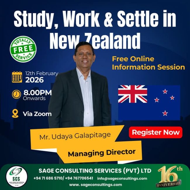 Join our Special Information Webinar hosted by Sage Consulting Services 12th February From 8.00 PM onwards Live on Zoom We’ll discuss the key pathways and step-by-step process to make your New Zealand dream a reality 📌 Register now through the link below to reserve your spot https://forms.gle/35pxfrvS8Z2W9Mi79 📲 Join our WhatsApp…