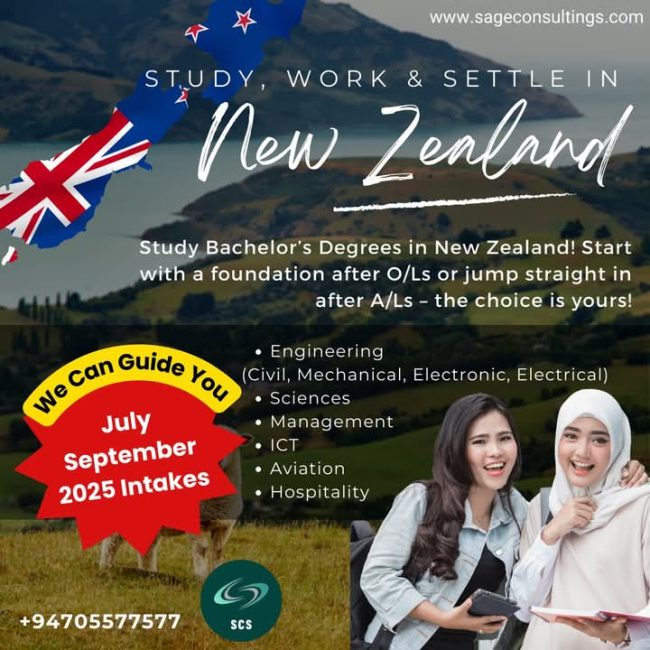 “Pursue your Bachelor’s degree in New Zealand! Enjoy a top-tier education, stunning landscapes and a supportive environment that prepares you for a global career.”   Ready to start your adventure? 🌟 Contact us at SAGE for personalized guidance and support on your study abroad journey. We are here to turn your dreams into reality!  …
