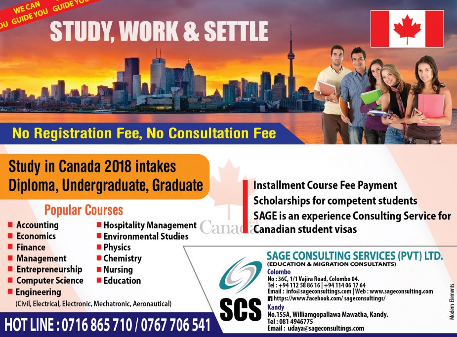 We are organizing a spot admission & Counseling Session by involving with Waikato Institute of Technology (Wintec) New Zealand. So we are inviting you to be present and gain more knowledge about international education systems & your interested courses on 13th of February 2018 at 1.30 p.m to 3.00 p.m in our Bambalapitiya Sage Consulting…