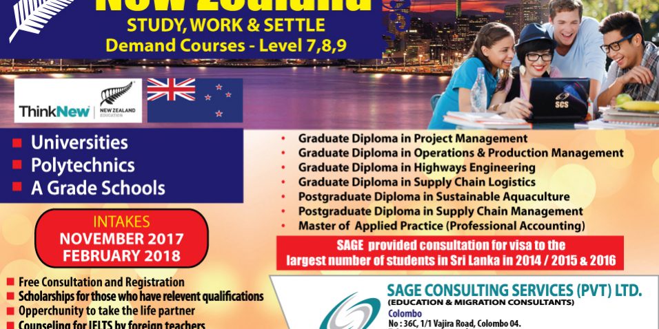 Oct92017Uncategorized Category: UncategorizedBy SageOctober 9, 2017 Share this post Share on FacebookShare on Facebook TweetShare on Twitter Share on LinkedInShare on LinkedIn Share on WhatsAppShare on WhatsApp Author: Sage Post navigationPreviousPrevious post:Sri Lankan visit of New Zealand Immigration Advisers Mr.Colonel Himanshu Rai & Mrs.Vandana Rai.NextNext post:Study in USA – Undergraduates & Graduates intakes are now open…….Related PostsStudy Abroad & Shape Your Future!November 26, 2025Study and Work in the UKNovember 25, 2025Ready to take your future to the next level? 🇳🇿✨November 22, 2025New Zealand,,November 16, 2025New ZealandOctober 5, 2025New Zealand and CanadaOctober 5, 2025